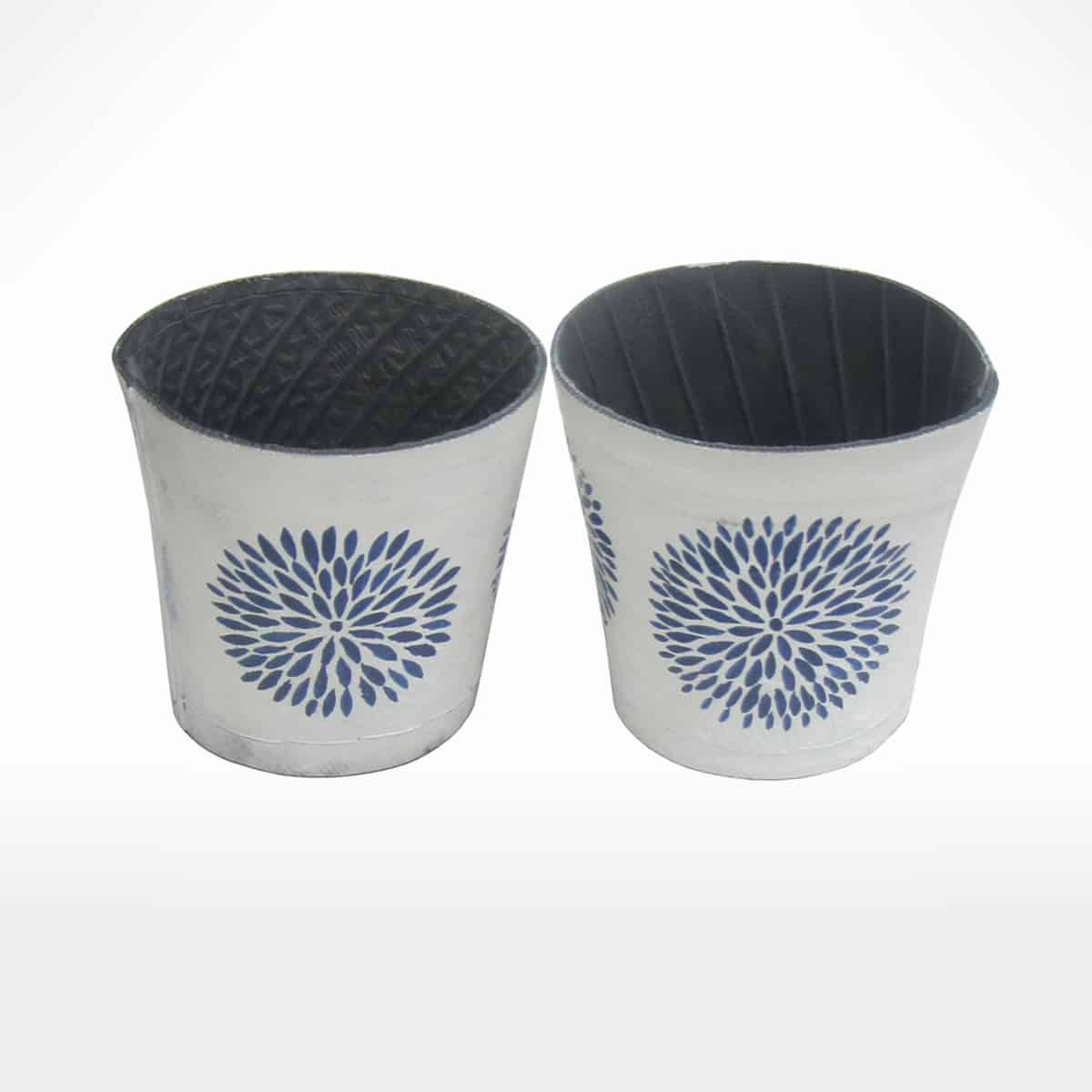 Made from: Recycled rubber and tire with a hand painted finish